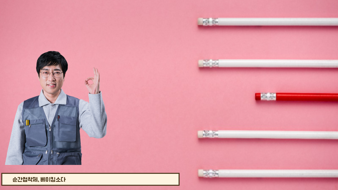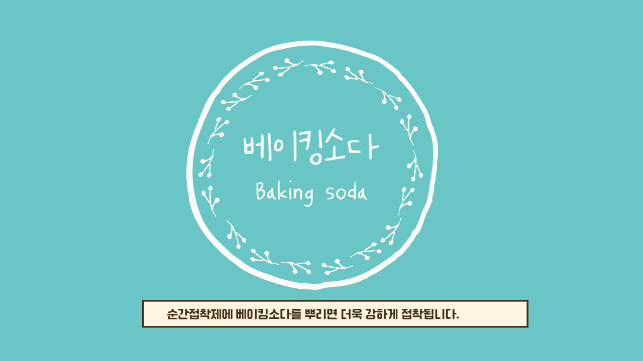 저 같은 경우에는 구입한 지 얼마 안 된 키보드 스페이스바가 부서져 순간접착제를 발라 접착을 시킨 후에 겉 부분에 베이킹소다를 솔솔 뿌려주고 이쑤시개로 펴서 발라주었다가 물티슈로 닦아주니 훨씬 더 강력하게 접착된 것을 확인하였습니다.