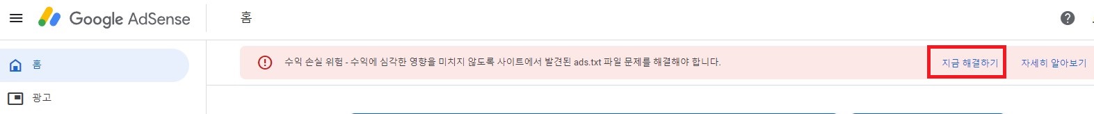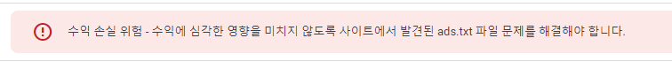 수익 손실 위험 - 수익에 심각한 영향을 미치지 않도록 사이트에서 발견된 ads.txt 파일 문제를 해결해야 합니다.