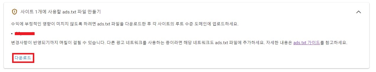 2. 문제가 생긴 블로그를 기억하고 아래의 다운로드를 클릭하여 ads.txt 파일을 다운로드합니다.